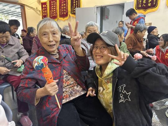 为践行志愿服务精神,弘扬中华民族尊老、敬老、爱老、助老的传统美德,引导青年党员在社会服务中锤炼党性、践行初心,建筑与土木工程学院学生第一党支部联合2025级给排水(专升本)1班、给排水1班、房建1班团支部于2025年10月25日下午走进永川区夕阳之家敬老院开展以“青春映党徽,重阳暖桑榆”为主题的党日活动,此次活动旨在将温暖的陪伴与切实的服务送至老人身边,让尊老敬老之风浸润心田,让志愿精神在实践服务中绽放光芒。 活动当日,全体志愿者在学校门口集合,统一乘坐大巴车抵达夕阳之家。在与敬老院负责人顺利完成对接后,志愿者们带着精心准备的慰问品和活动物资,满怀热情地走进了老人们的生活区域。为了将老人们妥善地引导至活动室参与接下来的互动,志愿者们细心搀扶行动不便的老人坐上轮椅,或稳步陪同他们走向活动场地,并关切地询问他们的身体状况和日常起居,原本安静的走廊渐渐充满了温暖的问候与笑语。 活动伊始,志愿者们用一套简单易学的手指操迅速拉近了与老人们的距离。在轻快的背景音乐下,志愿者们分散在老人身边,一边进行示范,一边耐心讲解动作要领。“来,爷爷奶奶,我们一起伸出双手,先活动一下大拇指……”老人们兴致勃勃地跟着志愿者的口号,认真屈伸手指、对压指尖。现场气氛温馨而活跃,一些原本拘谨的老人也逐渐放松下来,脸上露出了开心的笑容。这套手指操不仅有效帮助老人们刺激穴位、促进手部血液循环,更在轻松的互动中消融了初见的陌生感,为后续活动的顺利开展营造了融洽的氛围。 随后进入艾草锤手工制作环节,志愿者们将预先准备好的艾草球、长布条和短木棒等材料分发到每位老人手中。制作过程中,志愿者们或“一对一”或“一对多”地守在老人身旁,细致地演示每一个步骤:如何用棉布完美包裹并利用绳子巧妙地固定出锤头,最后再将木柄牢牢系紧。在志愿者们的帮助下,一位奶奶在完成了自己的第一个艾草锤后高兴地说:“没想到我这么大年纪了,还能自己做个小锤子,闻着艾草的香味,感觉整个人都舒服多了。”活动现场欢声笑语不断,当一个个充满艾草清味的养生锤在老人们手中陆续成型时,他们脸上洋溢的自豪与喜悦的笑容,成为了活动现场最动人的风景。这些亲手制作的艾草锤,不仅承载着实用的养生价值,更凝结了志愿者们浓浓的关爱与陪伴的温情。 接下来,在洪亮的歌声中志愿者给老人分发零食。几首大家耳熟能详的经典老歌被志愿者演唱得绘声绘色,歌声悠扬,瞬间把整个场地的气氛点燃了。许多老人不由自主地跟着哼唱,大家仿佛回到了那些美好的时光,彼此间的距离也因为音乐变得更加亲近。与此同时,另一组志愿者开始分发面包、香蕉和饼干等小点心,香甜的味道弥漫在空气中,老人们纷纷接过,笑容满面。一位奶奶捧着香蕉,笑着说:“吃着甜甜的香蕉和你们说说话,真好。”这一刻,志愿者与老人们之间的情感在歌声和美食中悄然滋长,场面温馨而动人。 通过此次重阳节敬老院主题党日活动,老人们不仅享受到了细心的照顾和欢乐的时光,也在互动中感受到了党的关怀与温暖。志愿者们带领老人们做手指操、制作艾草锤,并一同唱歌,整个活动氛围温馨愉快。党员同志们在服务中进一步领悟到“我将无我,不负人民”的初心使命,深刻感受到为民服务的责任与担当。建筑与土木工程学院学生第一党支部将继续发扬先锋模范作用,以实际行动传递党的关怀,让更多的老人感受到社会的温暖和党的力量,为弘扬中华优秀传统文化、推动社会和谐贡献青春力量。