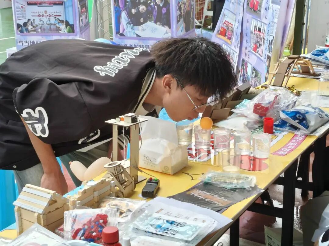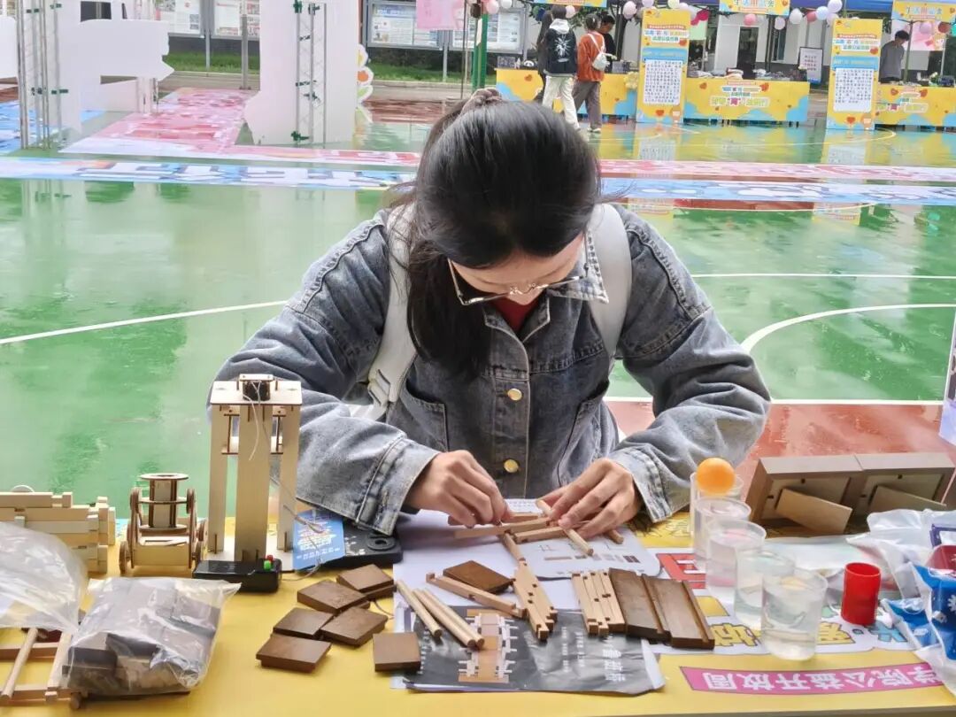 公益暖人心,青春正当时。为响应国家“五育并举”号召,做好校内志愿服务工作板块氛围营造,充分展现“一院一公益”品牌工作成果成效,11月10日,重庆城市科技学院于学校AB栋篮球场开展“志愿‘芯’光·爱满城科”志愿公益市集,建筑与土木工程学院团总支·学生会积极参与并设置“青春筑益·砼筑善途”公益周摊位,以“艾养耆老+砼筑科趣”志愿活动内容融合主题,为全体师生带来一场兼具温度与趣味的公益摊位展示。 活动现场,主题摊位前人头攒动,热闹非凡。一侧的“艾养耆老”互动区,“小蜜蜂钓鱼”亲密认知比赛温情上演,师生与志愿者们一对一互动比拼,手持鱼竿专注“垂钓”,欢声笑语中模拟敬老服务场景,不仅体验了陪伴的温暖,更深刻理解了 “老吾老以及人之老” 所蕴含的传统美德。 摊位另一侧的“砼筑科趣”体验区则成为科学探索的乐园。“特工密信”环节里,师生们亲手将维生素C粉末溶解,用棉签在纸上绘制秘密图案,待晾干后喷洒碘伏,原本空白的纸张瞬间浮现清晰字迹,奇妙的化学反应引发阵阵惊叹;“工程学实验区”则让大家化身小小工程师,在动手操作中感受结构力学的魅力,打破了传统课堂边界,让科学知识变得生动有趣。 参加此次“志愿‘芯’光·爱满城科”志愿公益市集,不仅丰富了大学生校园文化生活,更让公益精神在互动体验中落地生根。未来,建筑与土木工程学院将持续以实践活动为载体,引导青年学子在服务中成长,在探索中进步,用青春力量书写公益新篇章。