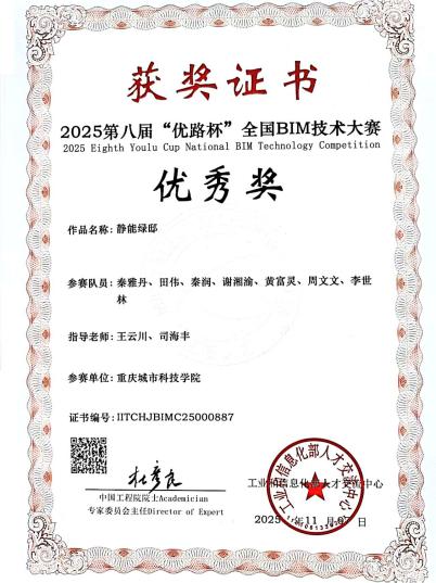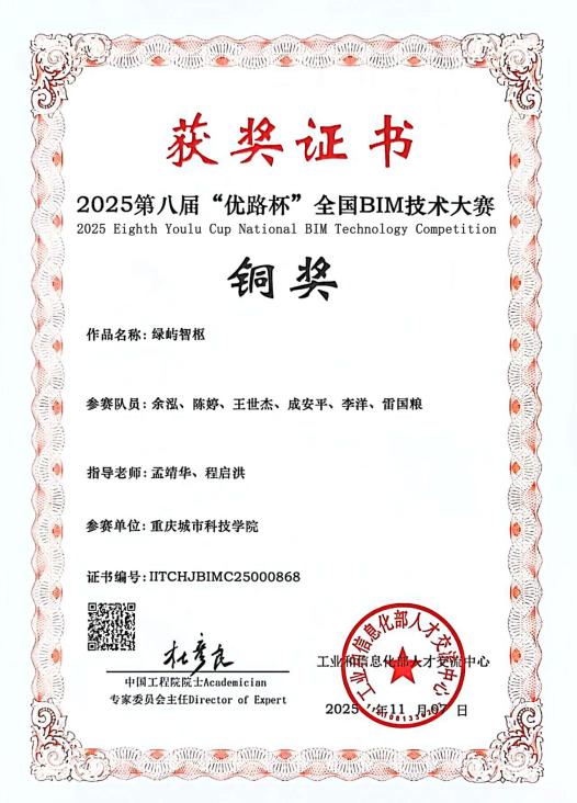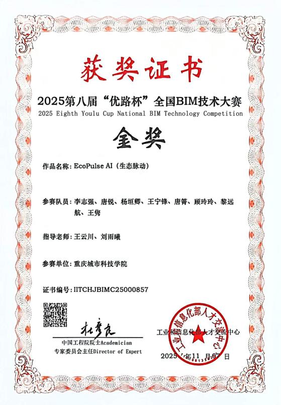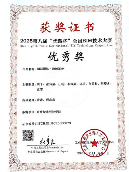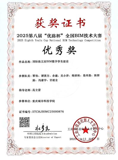 近日,第八届“优路杯”全国BIM技术大赛院校组赛事结果正式揭晓,重庆城市科技学院鲁班智能建造产业学院学子凭借扎实的专业能力与创新实践,一举斩获大赛1项金奖,1项铜奖,3项优秀奖。用数字表达。这是该校自参赛以来,在“优路杯”BIM大赛中取得的历史最佳成绩,更是首次将该赛事最高荣誉金奖收入囊中,实现了学校在该领域国家级赛事金奖零的突破! “优路杯”BIM大赛是国内建筑信息模型(BIM)领域极具影响力的专业赛事,旨在搭建院校BIM教学成果展示与交流平台,选拔具备实践能力与创新思维的高素质建造人才,其奖项含金量被业内广泛认可。本届大赛院校组吸引了全国30余个省份、400余所高校的2000余支队伍参赛,覆盖建筑、结构、机电等多个专业方向,赛程涵盖BIM模型搭建、碰撞检查、施工模拟、成果汇报等全流程考核,竞争尤为激烈。 为冲击此次赛事,重庆城市科技学院组建了由建筑与土木工程领域骨干教师带队、12名优秀学子组成的参赛团队。备赛期间,团队围绕赛事要求展开为期3个月的专项训练,针对复杂建筑模型优化、施工方案模拟推演等难点反复打磨,将课堂所学理论知识与工程实际深度融合。 团队部分成员来源于建筑与土木工程学院卓越班与房屋建筑工程制图与施工协会。协会以“用双手绘制蓝图,以尺规成就梦想”为宗旨,致力于传播建筑制图与建模科技知识,通过开展专业培训、技术交流、技能实践等活动,拓宽学生知识面,提高会员制图技能与建模水平,培养具有创新精神和实践能力的应用型人才。协会通过学术指导、技能培训的培养模式,为成员打下扎实的专业基础。 卓越班旨在全面贯彻落实“因材施教、分类培养”的教育理念,培养高素质应用型人才。本次赛事既是卓越班培养模式的一次成功检验,也是房屋建筑工程制图与施工协会实践育人成效的集中体现。未来,学校将持续加强卓越班和专业协会建设,整合资源,完善机制,促进学生理论与实践相结合,助力学生迈向卓越未来。 这枚金奖不仅是对学生专业能力的肯定,更是学院‘实践育人’理念的生动体现。学院将以此次获奖为契机,进一步深化BIM技术在专业教学中的应用,推动课程体系与行业需求精准对接,培养更多适应智能建造发展的高素质人才。此次获奖,不仅为重庆城市科技学院赢得了行业声誉,更为学校建筑类专业建设注入新动力,也为西南地区高校BIM人才培养提供了可借鉴的实践经验。