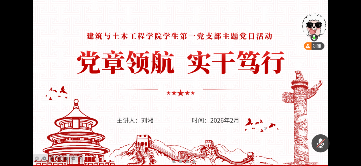 为深入学习贯彻党章精神,强化党员党性修养,筑牢理想信念根基,建筑与土木工程学院学生第一党支部于2026年2月13日中午12:20在线上开展以“党章领航,实干笃行”为主题的党日活动。本次会议由刘湘同志主持,支部书记梅本婷与全体党员参加。 会议伊始,刘湘同志带领全体党员系统学习党章的核心内容。她从党章的概述、发展历程、总纲、条文及学习遵守五个方面展开讲解,重点阐释了党章作为党的根本大法的地位与作用,回顾了党章自一大纲领到二十大修正案的演变历程,深入解读总纲中关于党的性质、指导思想、基本路线、党的建设六项基本要求等重要论述。 通过此次系统学习,支部党员深刻认识到,党章作为党的理论精髓与路线方针政策的高度凝练,是党员增强党性、规范言行、履职尽责的根本遵循。作为新时代大学生党员必须始终把党章精神深植于心、践之于行,在专业钻研与社会实践中锤炼过硬党性,以实干担当践行初心使命,同时要坚持学思用贯通、知信行统一,以党章为镜常照自身、锤炼党性修养,以党章为尺校准言行、约束日常举止,真正将学习所得转化为驱动工作提质增效的强劲动能。 随后,与会党员围绕学习内容展开交流分享。陈錄同志结合自身实际谈到:“作为新时代大学生党员,学习党章不仅要知其然,更要知其所以然。我们要把党章要求融入日常、做在经常,在学业科研中发挥先锋模范作用,在服务同学中体现党员温度,真正把党章内化为政治自觉、思想自觉和行动自觉。” 最后,支部书记梅本婷在总结时强调,党章作为党的总章程,学习党章是每一位党员的基本功与必修课。全体党员要以此次学习为契机,持续深化对党章的理解和把握,做到学思用贯通、知信行统一,在“十五五”开局之年,以更加昂扬的姿态投身学习与实践,在强国建设、民族复兴的伟大征程中书写无悔的青春答卷。