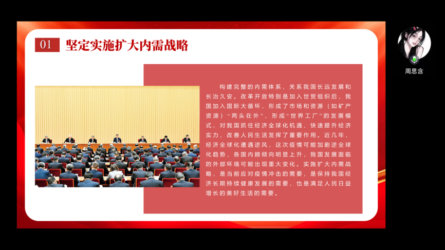 为加强党员队伍建设,激发组织活力和凝聚力,做好发展党员和党员教育管理工作,建筑与土木工程学院学生第一党支部于2026年1月22日12:20,在线上开展以“坚持从严治党,坚守责任担当”为主题的组织生活。本次会议由周思含同志主持,支部书记梅本婷及全体党员参会。 会议伊始,周思含同志指出,实施扩大内需是战略之举,它既是应对当下冲击的迫切需要,也是实现经济长期健康发展、满足人民美好生活需求的必然选择。构建完整内需体系需打通经济循环堵点,将扩大内需与供给侧结构性改革相结合,形成需求与供给的动态平衡。同时,扩大消费要通过促进就业、完善社保等夯实基础,扩大投资则需聚焦新基建、产业改造、新型城镇化等关键领域。 紧接着,会议指出使命是服务大局、助力现代化的关键。习近平总书记对中央企业作出重要指示,肯定其在国民经济中的骨干支柱作用,要求新征程上中央企业立足职责使命,服务国家大局、聚焦主责主业、强化科技创新等,这不仅是对中央企业的要求,也为各类市场主体和广大党员指明了方向。作为新时代学生党员,我们也需立足专业所学,明确自身在中国式现代化建设中的定位,勇担使命,为国家战略实施和经济社会高质量发展添砖加瓦。 随后,周思含同志强调抓作风是落实自我革命要求的抓手。推进自我革命,需增强党性、规范权力运行、从严监督执纪、落实管党治党责任,领导干部更要以身作则;推进作风建设,需各类监督贯通协调,加大风腐同查力度,完善作风建设长效机制。作为学生党员,我们要时刻绷紧自我革命这根弦,严格遵守中央八项规定精神,自觉抵制“形式主义、官僚主义、享乐主义、奢靡之风”,在日常学习工作中以实际行动维护风清气正的政治生态,践行共产党员的初心使命。 在支部党员讨论分享环节中,江子衡同志提到:“今天的三个专题让我深受启发。扩大内需战略既是应对外部环境变化的主动选择,更是大国经济发展的必然路径,作为学生党员,我们应深刻认识扩大内需的战略意义,主动践行绿色消费、理性消费理念,同时注重作风建设,它是党员的立身之本,自我革命永远在路上,我们要从小事严起、从日常抓起。” 会议最后,支部书记梅本婷进行总结:“本次组织生活聚焦扩大内需、使命担当、作风建设三大核心专题,既立足国家发展战略,又紧扣党员履职要求。扩大内需是稳增长的战略 之举,使命担当是促发展的关键支撑,作风建设是强党性的根本保障,三者相互贯通。全体党员应把学习成果转化为实际行动,践行初心使命,主动将个人成长融入国家发展大局,为中国式现代化建设贡献自己的力量。”