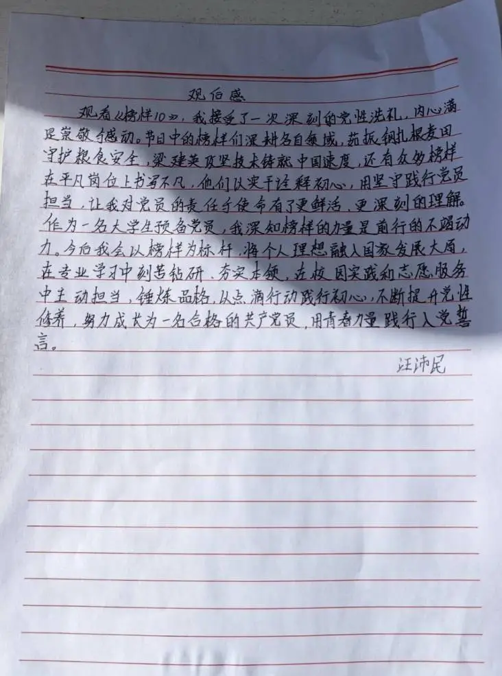 为深化党性教育,传承榜样精神,引导学生党员在专业学习与实践中践行初心使命,建筑与土木工程学院学生第四党支部于2026年1月25日,在线上开展以“汲取榜样力量,勇担社会使命”为主题的党日活动,活动内容为观看《榜样10》专题节目,以榜样为镜鉴,凝聚奋进力量。 《榜样10》专题节目聚焦新时代优秀共产党员、先进基层党组织的感人事迹,通过鲜活的故事,生动展现了榜样人物在科研攻关、基层治理、国防建设等领域的坚守与担当。他们中,有扎根农业一线数十年,用科技为粮食安全保驾护航的茹振钢;有深耕轨道交通领域,以创新突破铸就“中国速度”的工程专家梁建英;更有一辈子投身国防科研,为国家防护工程事业鞠躬尽瘁的钱七虎。一个个感人至深的故事,一句句掷地有声的誓言,深刻诠释了共产党员的初心使命与精神风采。 节目结束后,党员们纷纷结合自身经历分享学习感悟。汪沛民同志表示:“钱七虎院士‘为国铸盾’的一生让我备受震撼,作为土建专业学子,我们应积极投身于民生工程建设,用专业所长为民生改善贡献力量。”董帆同志谈到:“热孜万·艾拜扎根基层的坚守启示我们,无论身处何种岗位,都要脚踏实地、真抓实干,为行业高质量发展添砖加瓦。” 此次党日活动,让全体党员在榜样事迹中汲取了精神养分,在思想碰撞中明确了前进方向。下一步,建筑与土木工程学院学生第四党支部将以此次活动为契机,持续深化榜样学习教育,把榜样精神融入支部建设、专业学习、实践服务全过程,引导广大学生党员以更加饱满的热情在实践中发扬榜样精神的力量。
