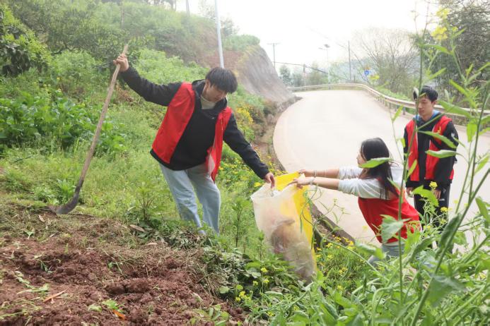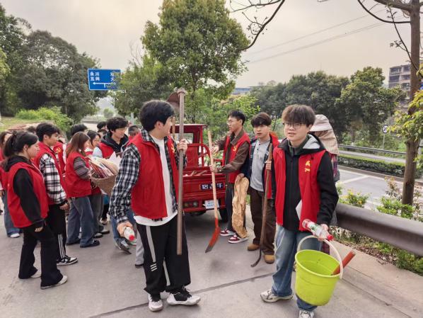 春风催新绿,植树正当时。为弘扬志愿服务精神,彰显青年学子责任与担当,助力社区环境品质提升,建筑与土木工程学院于2026.3.13上午8:30至11:30组织志愿者前往永川区双石社区,开展“清洁社区美环境,志愿植绿添新颜”主题志愿服务活动。 活动伊始,垃圾清理专项工作全面展开。志愿者沿社区公路,对道路两侧零散分布的塑料碎片、食品包装袋、烟头、纸屑等白色垃圾及杂物开展集中清理。他们手持垃圾夹俯身作业,细致排查草丛、排水沟、墙角等卫生死角,做到清理无盲区、无死角。队伍主动延伸清理范围,对公路外侧坡地等隐蔽区域进行全面清扫,并将捡拾垃圾严格按照可回收与不可回收标准分类装袋,以认真负责、耐心细致的态度,做好社区环境清洁服务。 上午 10 点,白色垃圾清理工作圆满完成,志愿者们随即转入杂草清理与花卉种植准备工作。大家手持锄头、镰刀,分工协作,对路边绿化带及闲置空地上的杂草进行彻底清除,面对扎根较深的杂草,志愿者们合力连根拔除,保障种植区域的土壤平整、无杂草杂物。经过一个半小时的劳作,社区公路两侧的杂草清理完毕,花卉种植的土地也整理完毕,为后续播撒花种、打造社区绿色景观奠定基础。 此次社区志愿服务活动,不仅让双石社区的公路环境变得干净整洁,为社区增添了绿意生机,更让志愿者们在实践中体会到劳动的价值。志愿者们用脚步丈量责任,用双手守护环境,在协作中凝聚力量,在奉献中收获成长,进一步弘扬了志愿服务精神,也让青年学子的责任与担当在基层服务中落地生根。