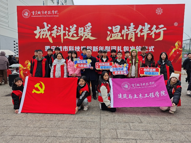 为引导学生党员强化责任担当、提升服务能力,深入践行“全心全意为人民服务”的根本宗旨,推动党性修养与服务实践紧密结合,体现学校人文关怀,2025年12月24日,重庆城市科技学院“城科送暖,温情伴行”新年慰问礼包发放活动在学校三期综合楼前广场顺利举行。建筑与土木工程学院学生第三党支部联合学院各学生党支部及心理工作站共同组成志愿者队伍,以此为契机组织开展12月主题党日活动。 活动前期,建筑与土木工程学院学生第三党支部积极牵头,协同各学生党支部与心理工作站组建志愿服务小组,有序开展礼包搬运、分类与整理等工作。志愿者们依据名单认真核对物资,按年级、班级合理规划发放区域,以规范流程和严谨态度展现了学生党员的责任意识,确保了慰问礼包发放工作准确、高效进行。 发放现场,学院党总支书记陈宣君、院长助理王肖巍亲临指导慰问工作,详细了解发放流程,与同学们亲切交流学习生活状况,并亲手送上慰问礼包,叮嘱大家注意防寒保暖、科学规划学习生活。志愿者们始终耐心引导、热情服务,将满载关怀的礼包传递到每一位同学手中,以实际行动践行党的宗旨,彰显新时代青年党员的初心与担当。活动结束后,志愿者们坚持“善始善终、细致严谨”的作风,主动做好现场清理工作。大家分工协作,整理折叠纸箱、清理杂物碎屑,并实施垃圾分类投放,在劳动中进一步强化了环保意识,展现了党员良好的精神风貌。 本次慰问礼包发放活动,是学校落实立德树人根本任务、关爱学生成长的具体体现,也传递出学院对学生的深切关怀与美好期盼。今后,学校将继续围绕学生需求,切实做好服务保障工作,努力营造优良育人环境,助力学子踏实求学、砥砺前行,在青春的征程中逐光而行、向阳成长。