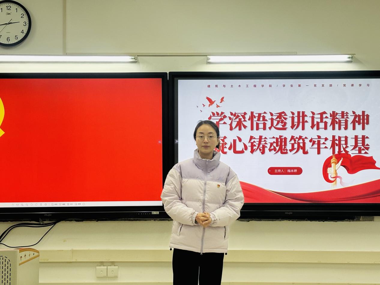 为深入学习贯彻党的重要会议精神与作风建设要求,引导学生党员筑牢思想根基、强化责任担当,建筑与土木工程学院学生第一党支部于2025年12月31日晚上18:30在一教316开展以“学深悟透讲话精神,凝心铸魂筑牢根基”为主题的专题党课学习。本次党课学习由支部书记梅本婷主讲,支部全体党员同志参加。 会议伊始,支部书记梅本婷紧扣中央城市工作会议精神开展领学工作。她深入细致地解读了习近平总书记关于城市工作重要讲话的核心要义,全面系统地阐述了新时代城市工作的总体要求以及“优化城市体系、建设创新宜居城市、筑牢韧性城市底线”等七项重点任务。同时,她紧密结合建筑与土木工程学院专业特色,着重强调学生党员务必深刻领会“人民城市人民建、人民城市为人民”的重要理念,切实将专业知识与城市高质量发展的实际需求紧密衔接,未来在城市更新、生态保护、基础设施建设等重点领域精准发力。 紧接着,党课紧紧围绕新时代党的治藏方略展开,支部书记梅本婷引领全体党员深入学习了习近平总书记关于西藏工作的重要论述,全面回顾了西藏自治区成立60年来所取得的辉煌成就,着重阐释了“稳定、发展、生态、强边”四件大事的核心内涵以及实践要求。她明确指出,铸牢中华民族共同体意识是新时代民族工作的主线。广大青年党员要积极主动学习中华民族发展史,切实增进“五个认同”,以实际行动坚决维护民族团结和国家统一。 随后,在中央八项规定精神学习环节,支部书记梅本婷紧密结合全党开展的专项学习教育情况进行全面综述,深入剖析了作风建设所具有的长期性和极端重要性。她着重强调,中央八项规定作为新时代全面从严治党的关键举措,全体党员务必深刻认识到形式主义、官僚主义、享乐主义和奢靡之风这“四风”问题的顽固性特征,时刻牢记习近平总书记所倡导的“钉钉子”精神要求,在学习和工作生活中切实做到严格自律,以坚定的决心和意志坚决抵制形式主义、官僚主义、享乐主义和奢靡之风,以求真务实的优良作风充分发挥先锋模范作用。 会议最后,支部书记梅本婷作总结发言。她强调,本次党课涵盖的城市工作、民族工作、作风建设等内容,都是新时代党建工作的重要组成部分。希望全体党员将学习成果转化为行动自觉,立足专业岗位踔厉奋发,在推进中国式现代化建设的新征程中,书写青年党员的责任与担当。